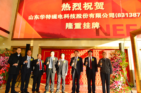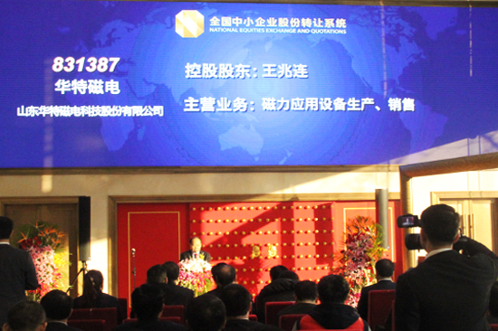 En la mañana del 8 de diciembre de Shandong Huate magnetoeléctrico Tecnología Co., Ltd. ", la nueva Sanban" lista ceremonia en la pequeña y mediana empresa de transferencia de acciones de la compañía de responsabilidad limitada celebró una gran. Director de la ciudad de Weifang Finanzas Subdirección Zhang Xinhua, el Comité Permanente del Comité del Partido del Condado de Linqu, magistrado adjunto ejecutivo Yi Limin, Condado de Linqu de la Oficina de Finanzas del director Gao Lingli, Condado de Linqu Chengguan Calle secretario del Partido de la comisión de trabajo de Shen Mingxin, Linqu Dongcheng calle el secretario del Partido de la comisión de trabajo Sun Chuankun, Shandong Huate acciones tecnológicas magnetoeléctrico limitados accionistas de la empresa y directivos de la presidente de la junta directiva Wang Zhaolian y compañía, las empresas del Condado de Linqu relacionadas persona responsable para asistir a la ceremonia de anuncio.